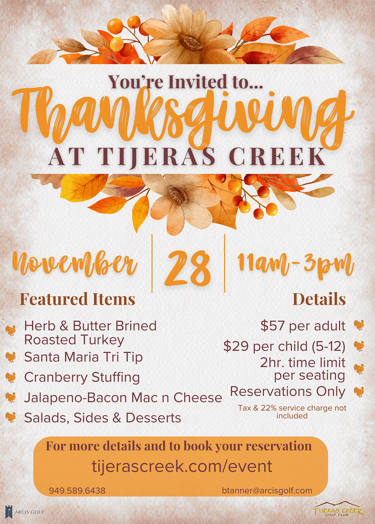 To register, please email Bryce Tanner at btanner@arcisgolf.com or call 949.589.6438.