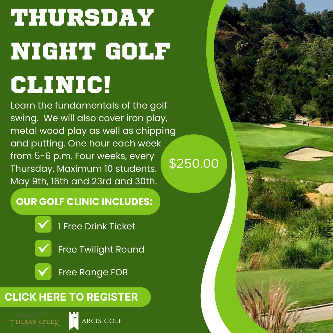 $250 per student (max 10 students) and includes 4 sessions, 1 free drink, 1 twilight round, and 1 driving range fob.